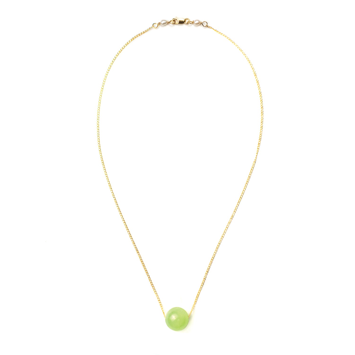 Add a subtle touch color to your style with this Serene Green Calcite Ball Necklace, a timeless necklace designed to embody serenity and elegance. The simple round green calcite stone adds a subtle touch of natural color—believed to inspire balance and calm. Perfect for layering or wearing on its own, this necklace seamlessly blends modern sophistication with meaningful beauty. The green calcite ball measures approximately 12mm diameter. The chain measures 16 inches in length and is 14/20 gold-filled together with the clasp. Two small white rice pearls adorn the clasp. A Lexi Jewelry exclusive design. Made and Designed in USA.